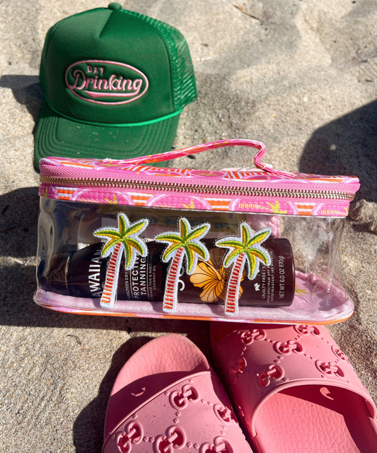 3 Pink Palms - Clear Open Top w/ Handles