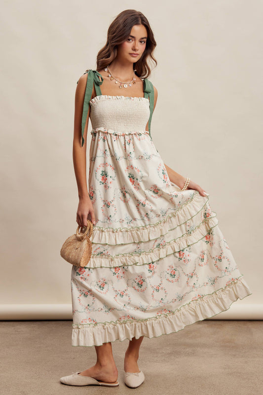 *PRE ORDER* Floral Smocked Tiered Maxi Dress