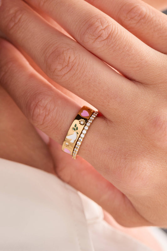 'Pray, Wait and Trust' Ring Set of 2: Gold